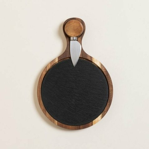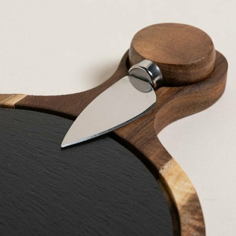 . Material: Madera de Acacia, Laja y Acero Inoxidable